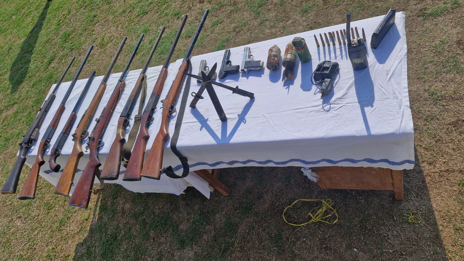 In Kakching district, six firearms including an AK-56 rifle, along with three grenades and ammunition, were recovered from Wabagai Turel Mamei.