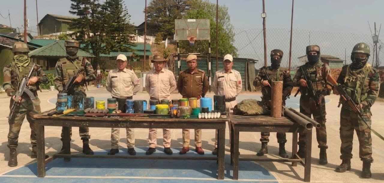 Another operation near Yangoubung village along the India-Myanmar border led to the recovery of 12 IEDs, four radio sets, three pistols, and a grenade launcher. All explosive devices recovered in the district were safely destroyed on-site following standard operating procedures.