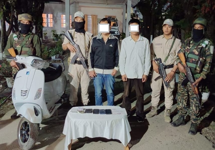 In an operation on Dingku Road, police apprehended two active members of the proscribed People’s Liberation Army (PLA) involved in extortion in and around Imphal. The arrested individuals have been identified as Thangam Surankumar Singh (29) and Chingakham Langol Singh (21).