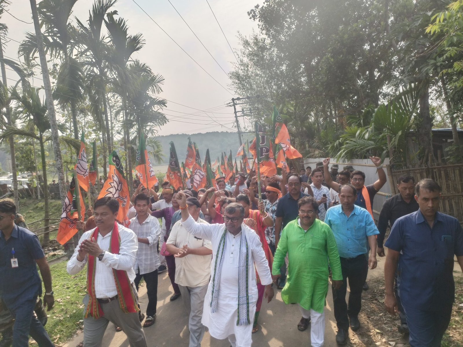 Addressing an election meeting at Chakmapara under booth number 20 of the Bodhjangnagar–Wakinagar constituency, Nath said that opposition parties, if voted to power, would continue to raise “false allegations of deprivation,” which he claimed harms tribal communities. He urged voters to support the “double engine government” to ensure overall development of tribals.