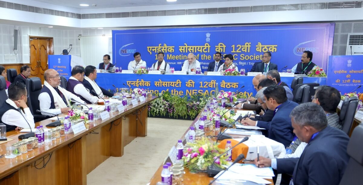 Agartala, December 23, 2024: Union Home and Cooperation Minister Amit Shah chaired the 12th meeting of the North Eastern Space Application Centre (NESAC) Society in Agartala, Tripura. The meeting saw the presence of Union Minister for Development of North Eastern Region Jyotiraditya M. Scindia, Tripura Chief Minister Dr. Manik Saha, Assam Chief Minister Hemant Biswa Sharma, Manipur Chief Minister N. Biren Singh, Arunachal Pradesh Chief Minister Pema Khandu, Sikkim Chief Minister Prem Singh Tamang, Union Minister of State for Development of North Eastern Region Sukanta Majumder, Union Home Secretary Govinda Mohan, Secretary of the Department of Space Dr. S. Somnath, Director of the Intelligence Bureau Tapan Deka, and other high-ranking officials from the Central and State Governments of the North Eastern region.