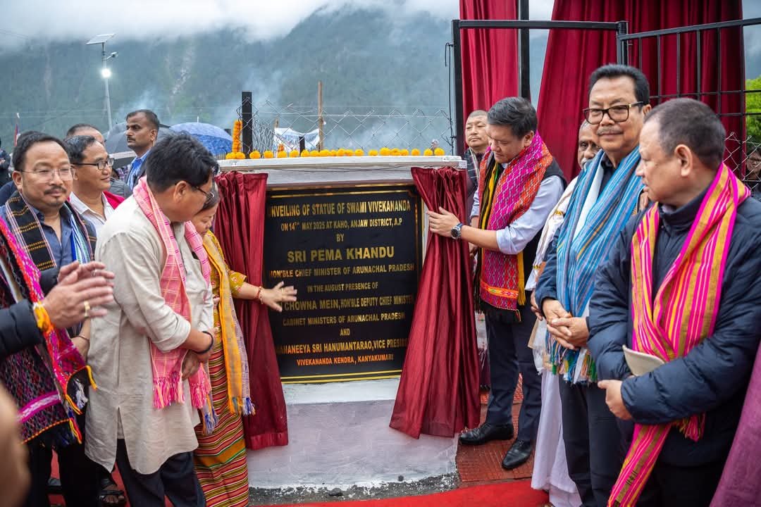 Arunachal Pradesh Chief Minister Pema Khandu unveiled a statue of Swami Vivekananda in Kaho, the easternmost village of India, in a ceremony attended by cabinet colleagues, Rupesh Mathur of VKAP Trust, Vivekananda Kendra Vice President Hanumantrao, VKV alumni, and local residents.