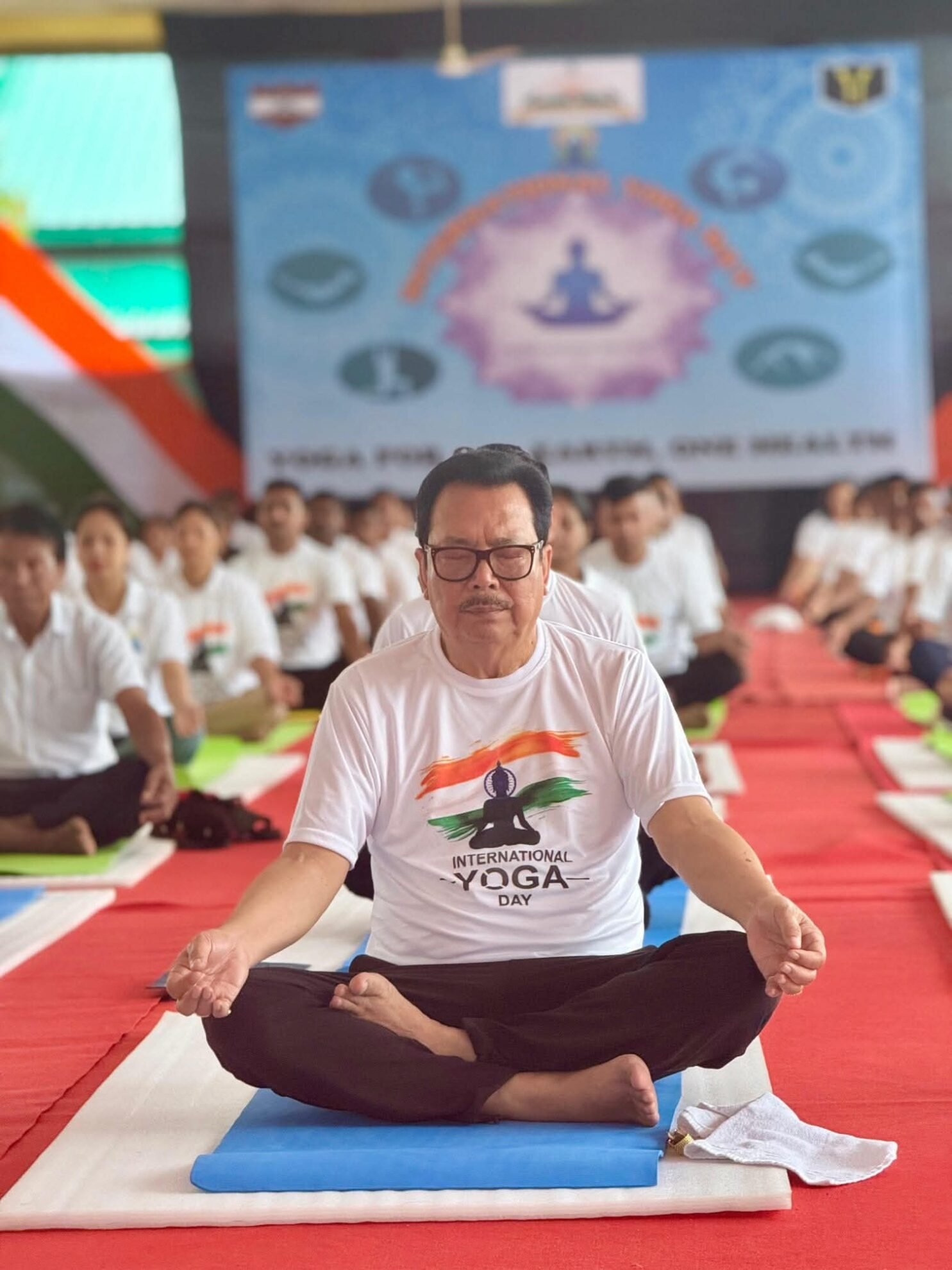 Taking to his official X handle, Chowna Mein expressed his happiness in being part of the event and highlighted the significance of yoga in daily life. “Having practised yoga for over 25 years, I can say with conviction that its physical, mental, and psychological benefits are profound. Yoga nurtures inner balance, instills discipline, and promotes holistic well-being,” he said, adding that yoga should become a way of life for all.