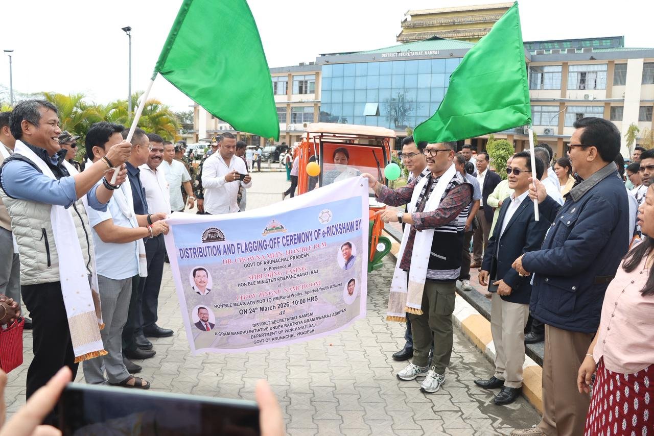 Namsai, March 24: Deputy Chief Minister of Arunachal Pradesh, Chowna Mein, on Tuesday flagged off E-Rickshaws under the Innovative & Economic Development/Income Enhancement Project (Gram Bandhu) at the District Secretariat, Namsai. The project is being implemented under the Revamped Rashtriya Gram Swaraj Abhiyan (RGSA).