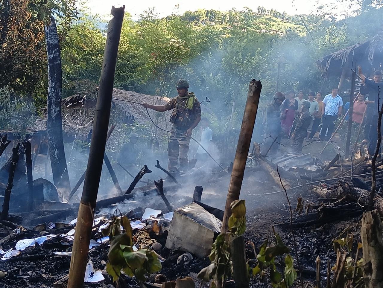 Assam Rifles personnel promptly responded to a fire incident in Lazu village by launching a rescue operation equipped with fire-fighting gear. With the active assistance of local villagers, the team successfully brought the blaze under control, preventing major damage.