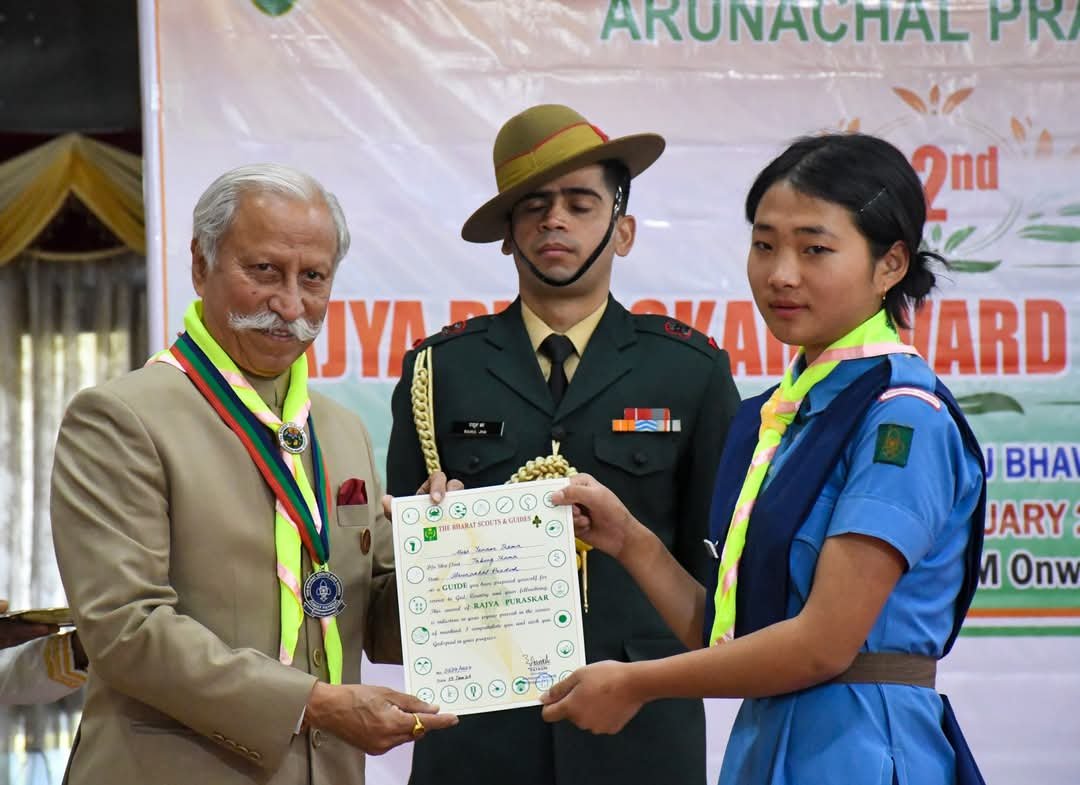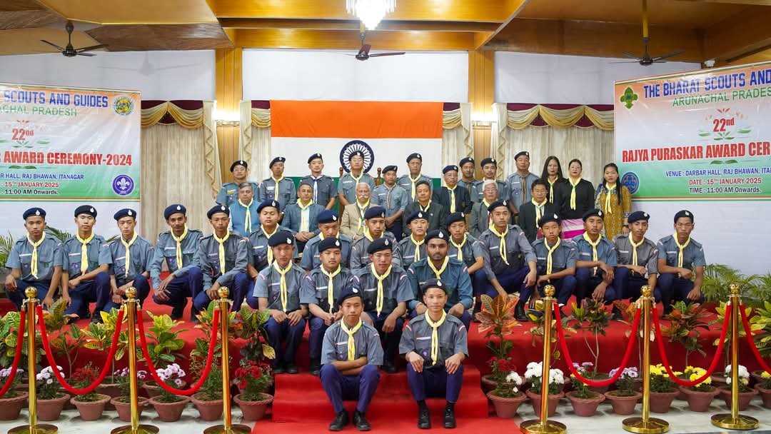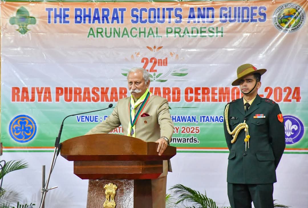 Itanagar, Jan 16: Arunachal Pradesh Governor Lt Gen KT Parnaik (retd) honored 161 scouts and guides with the prestigious Bharat Scouts and Guides Rajya Puraskar during a ceremony at Raj Bhavan on Wednesday. The awardees included 69 scouts and 92 guides, recognized for their exemplary dedication and service.