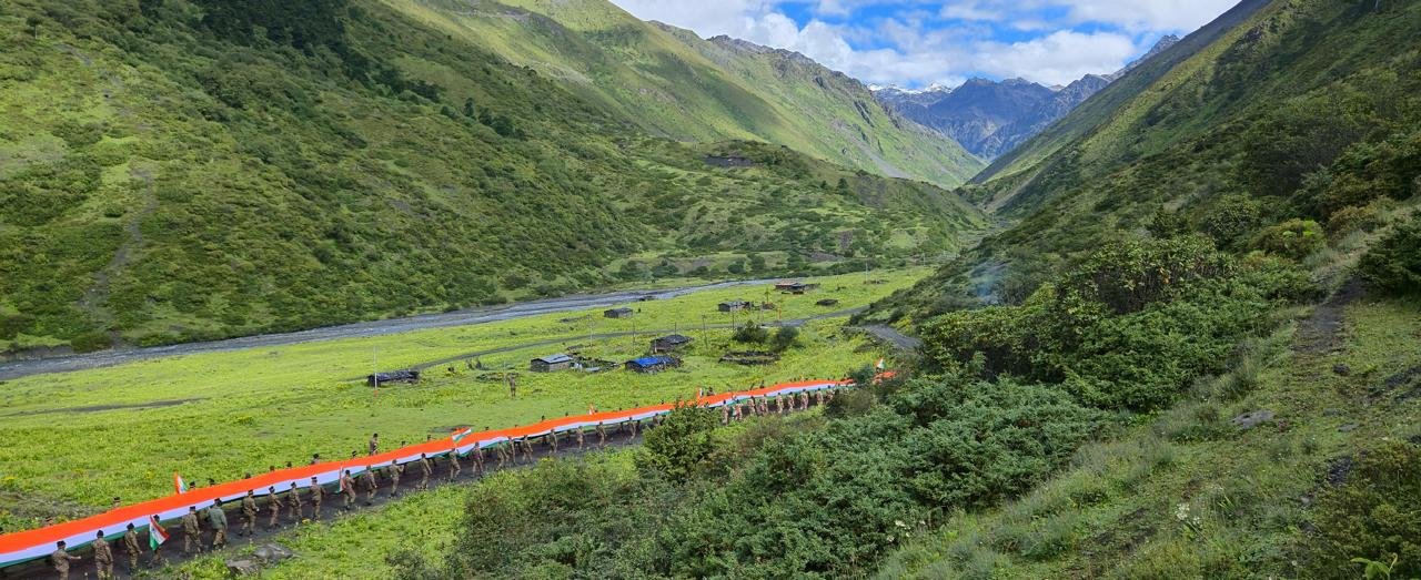 Carrying a 100-meter-long National Flag, soldiers of the Indian Army, ITBP personnel, and villagers from Mago and Chuna marched shoulder-to-shoulder through the greenfield of Chuna. The event transformed the rugged Himalayan landscape into a vibrant sea of saffron, white, and green—rekindling the spirit of patriotism, integrity, and unity in the border regions.