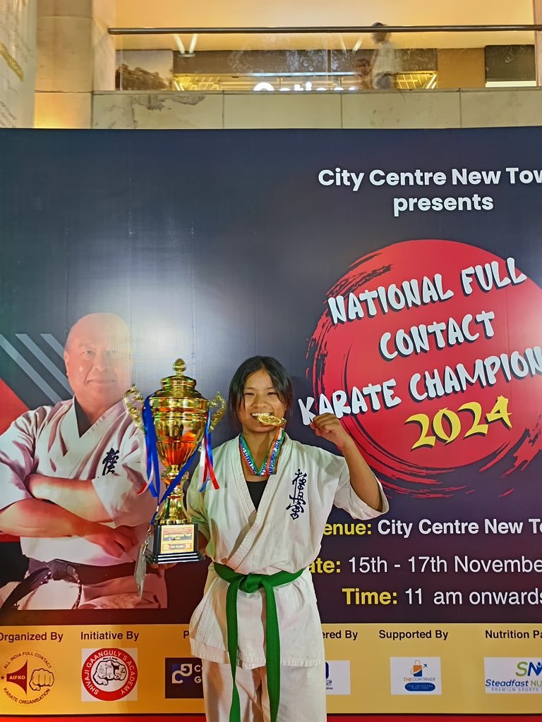Itanagar, Nov 23: Shamchak Mossang from Arunachal Pradesh made her state proud by clinching the Gold medal at the National Level Full Contact Karate Championship 2024, held in Kolkata from November 15 to 17.
