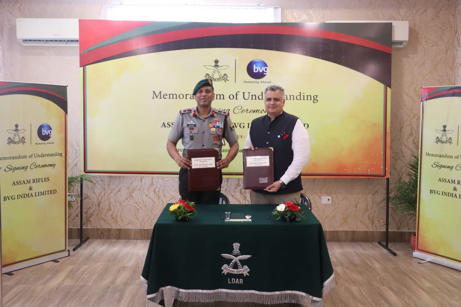 The MoU was signed in the presence of Lt Gen Vikas Lakhera, AVSM, SM, Director General of Assam Rifles, along with senior officials and representatives from BVG India Ltd.