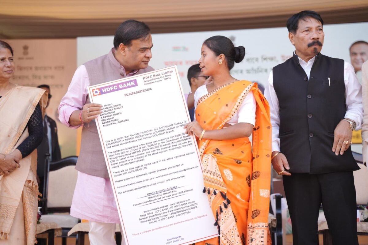 CM Sarma announced that over 5,000 women in Golaghat received ‘No Dues Certificates’ for unpaid loans from microfinance institutions. More than 2,000 flood-affected families were also given financial relief, while approximately 200 women were granted seed funds of Rs 40,000 each to support their entrepreneurial activities.
