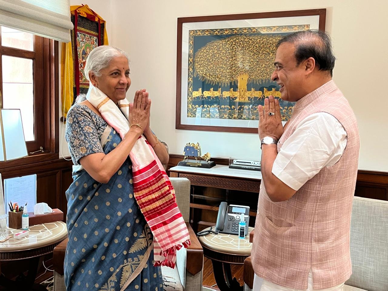 Assam Chief Minister Himanta Biswa Sarma met Union Finance and Corporate Affairs Minister Nirmala Sitharaman in New Delhi on Monday.