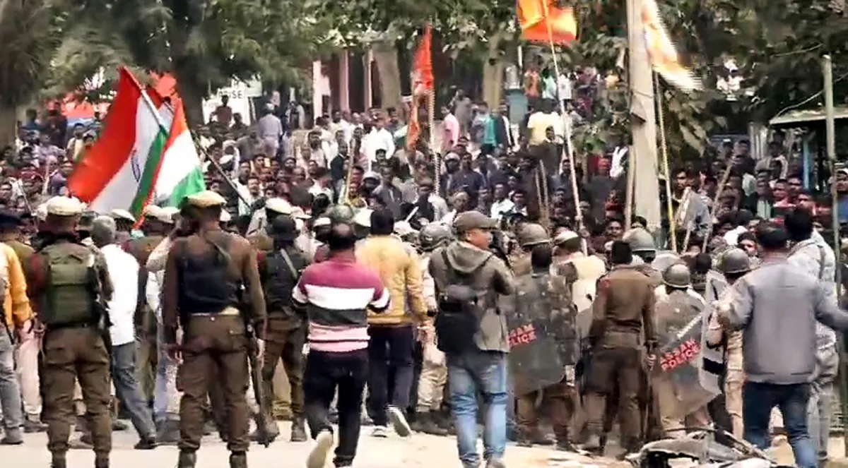 One of the victims, a 25-year-old specially abled man identified as Suresh Dey, died after a building was set on fire by agitators. Another person, Athik Timung, was killed during the clashes. Police said several officers sustained injuries due to stone pelting and other attacks.