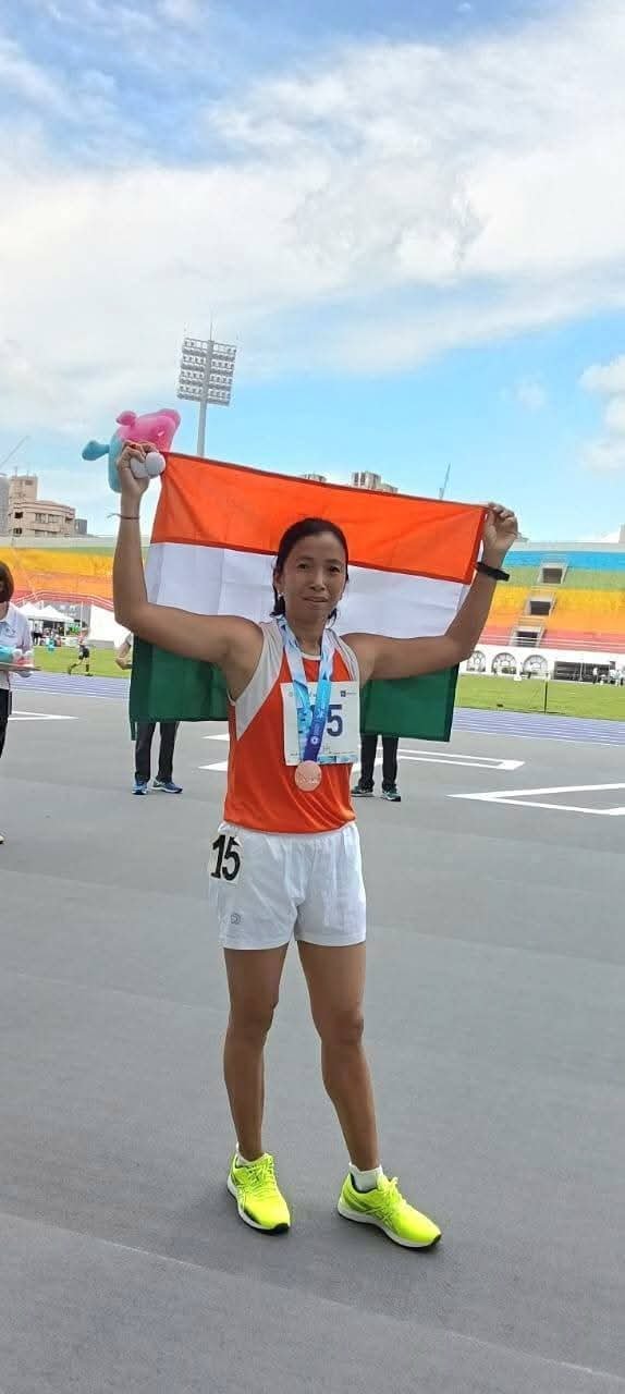 Guwahati, May 24: Pokhila Engtipi from Karbi Anglong district, Assam, secured the bronze medal in the 5000-metre race walk event at the World Masters Games 2025 held in Taipei City, Taiwan.