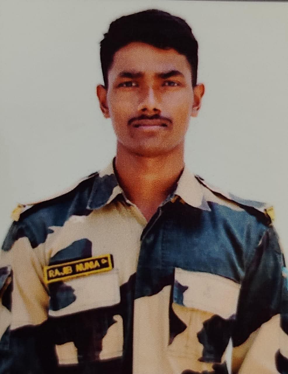 BSF constable Rajib Nunia from Cachar district, Assam, tragically lost his life while performing duty in Jammu’s Akhnoor sector.