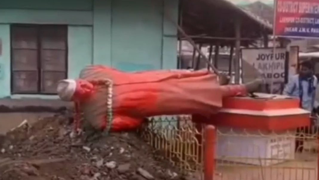 Police have detained one person and seized the excavator used to uproot the statue. “We have no eyewitnesses, but CCTV footage shows unknown miscreants demolishing it with an excavator,” said Lakhipur police station officer-in-charge Sankar Dayal.