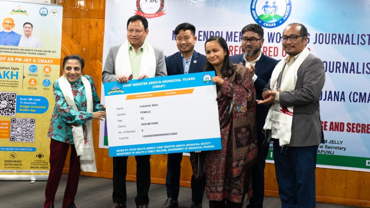The event began with a welcome address by APC President Dodum Yangfo and included speeches by APUWJ President Amar Sangno and Dr. Nabam Peter, who provided an overview of CMAAY. The Chief Guest ceremoniously handed over CMAAY cards to journalists, symbolizing the State Government’s dedication to ensuring cashless treatment of up to ₹5 Lakhs per family annually for eligible beneficiaries.