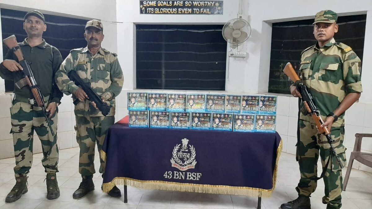 In a significant crackdown on trans-border smuggling, alert troops of the Border Security Force (BSF) in Tripura conducted multiple operations, thwarting attempts to smuggle contraband across the Indo-Bangladesh border. The successful operations resulted in the rescue of 5 cattle and seizure of: 850 kg of Sugar, Fire Crackers and Other Contraband Items worth ₹ 2,22,594.