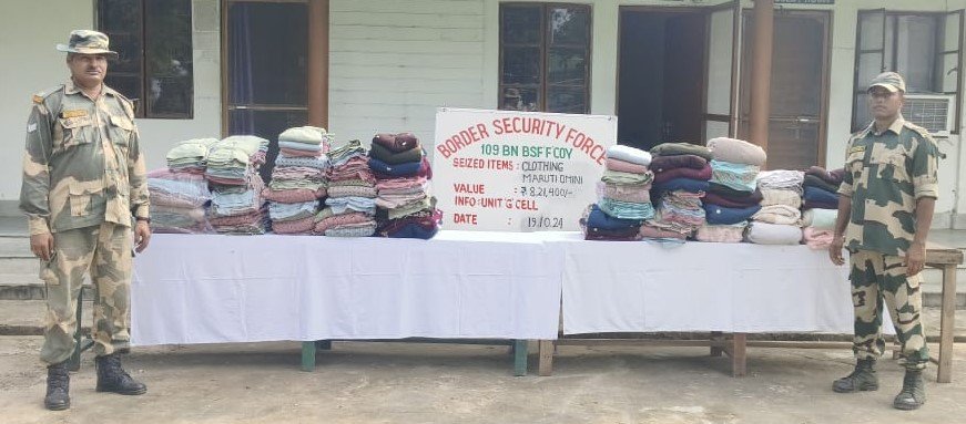 In a successful joint operation, BSF troops and Tripura Police seized a massive quantity of contraband in Krishnanagar and Korilatilla, Tripura. The haul included clothing and cigarettes (Oris & Parton) valued at ₹67,57,400, intended for smuggling.