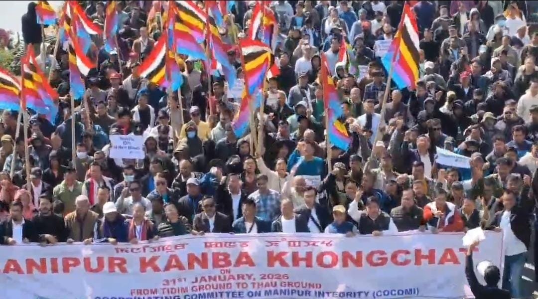 The Coordinating Committee on Manipur Integrity (COCOMI) on Saturday organised a massive public rally in Imphal, demanding protection of Manipur’s territorial and social integrity and the restoration of a popularly elected government in the state.