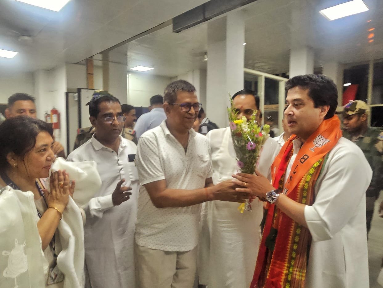 Gangtok, Sep 5: Union Minister for Development of North Eastern Region (DoNER) and Communication, Jyotiraditya M. Scindia arrived in the state capital of Gangtok, Sikkim on Thursday evening for a two-day visit. The Minister was warmly welcomed at Bagdogra Airport in West Bengal earlier today before proceeding to Gangtok by road.