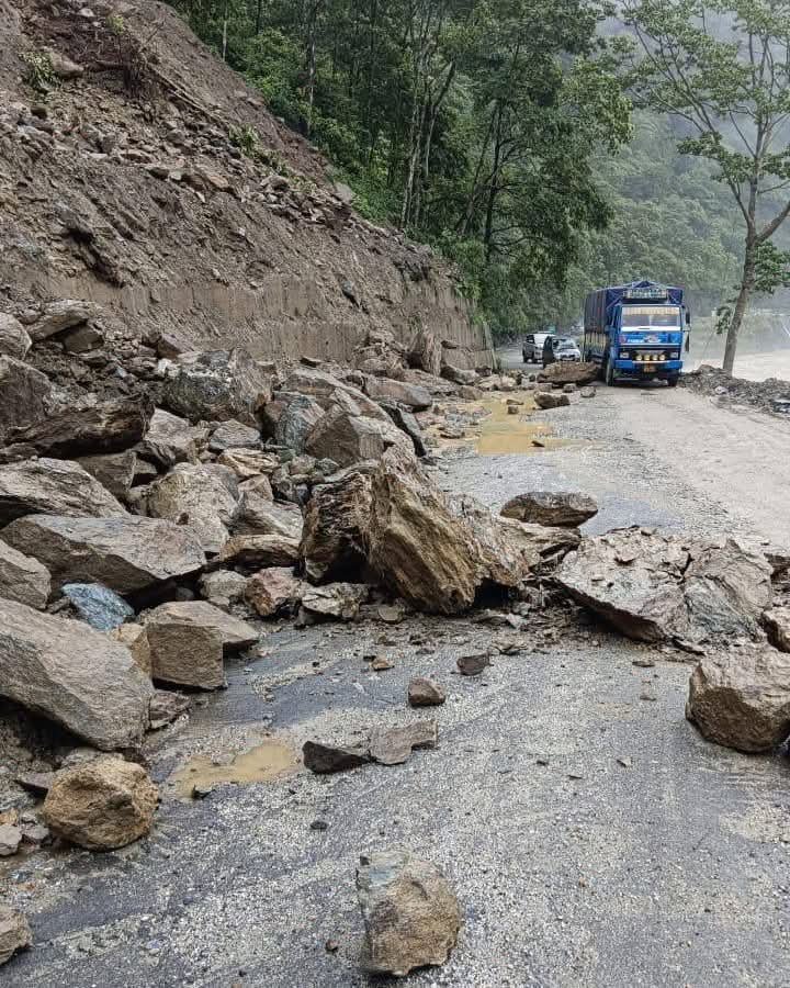 Landslides have been reported in Kalimpong district at locations including 29 Mile, Kali Jhora, Seti Jhora, and Melli.