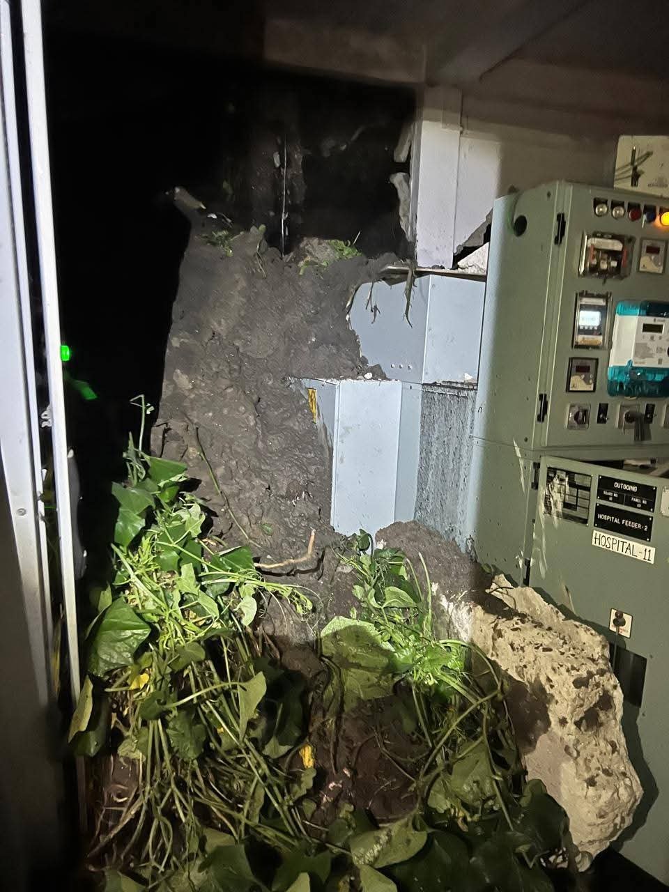 According to the Power Department, the landslide occurred around 6:30 PM, severely damaging the 11 kV control room and feeder panels. Sludge and water entered the control room, damaging electrical equipment, the battery system, and building columns.