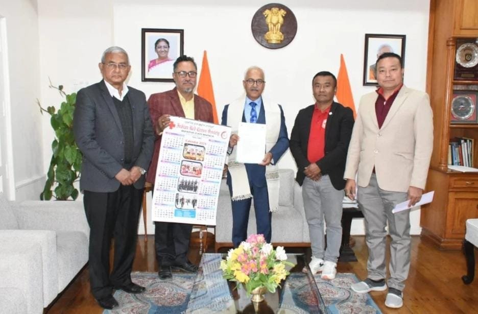 Representatives of the Indian Red Cross Society (IRCS), Manipur State Branch, led by Vice President Dr. R.K. Nimai Singh, met with Governor Ajay Kumar Bhalla at Raj Bhavan this evening. The team, which included the IRCS Chairman, Secretary, and Treasurer, briefed the Governor on their ongoing humanitarian initiatives in Manipur.