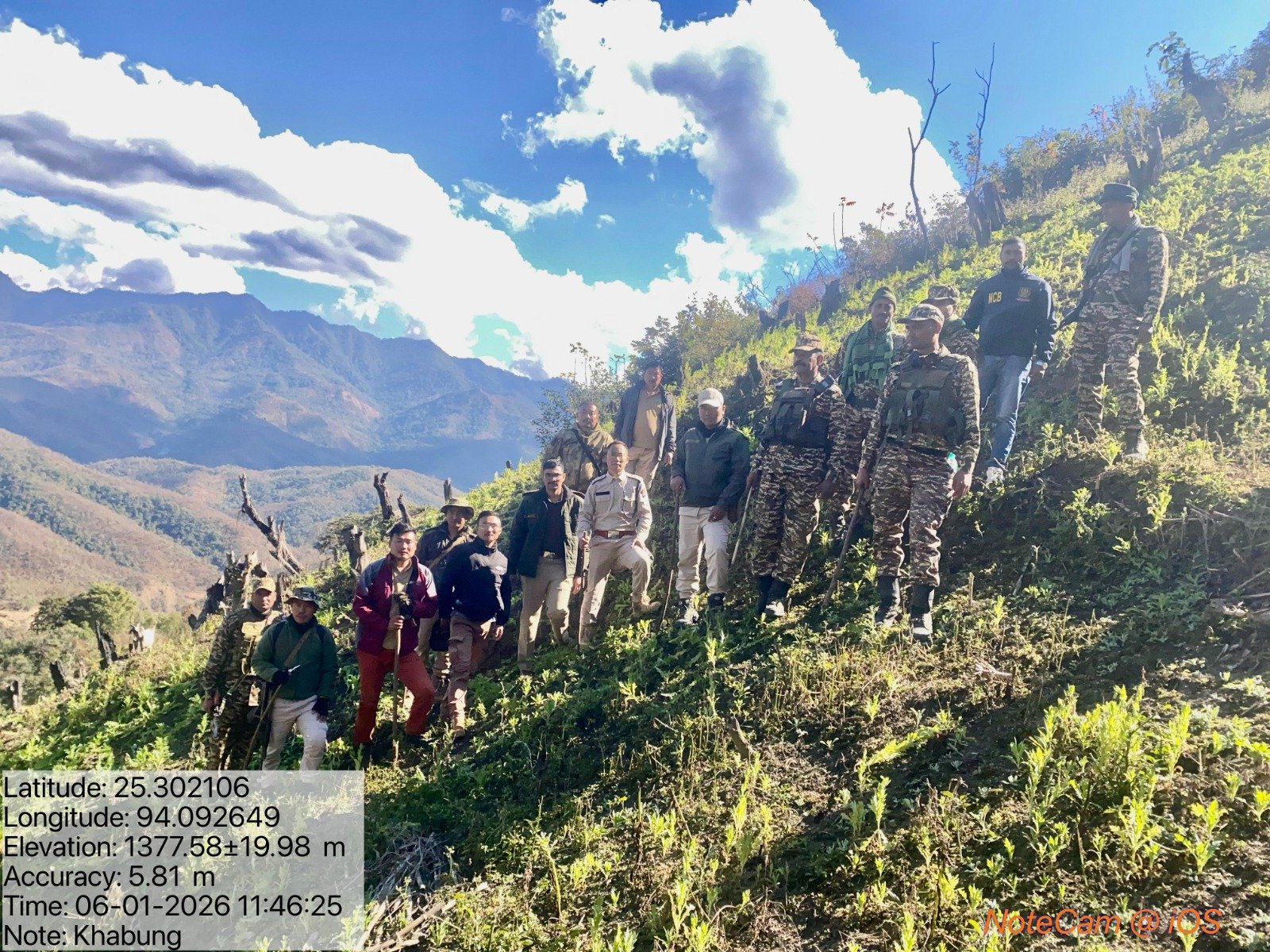 A joint operation was carried out today to destroy illegal poppy cultivation in the Upper and Lower Khabung Hill Ranges of Senapati district. The operation was conducted by a combined team comprising personnel from the Senapati Forest Division, Manipur Police, Central Reserve Police Force (CRPF), Narcotics Control Bureau (NCB), along with village volunteers from Khabung.