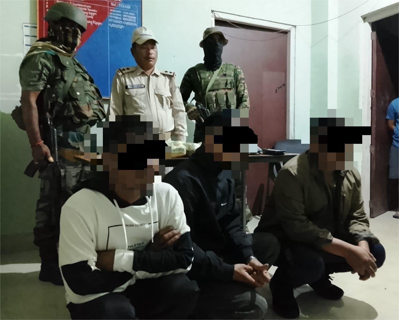 The arrested individuals have been identified as Thangkhanthawng (33) of Kannan Veng, Churachandpur district; Limminthang alias L. Khongsai (34) of Moreh Ward No. 9, currently residing at Tuibong, Churachandpur; and Thangjalet alias Letneu (31) of K. Nivangphai, Churachandpur district.