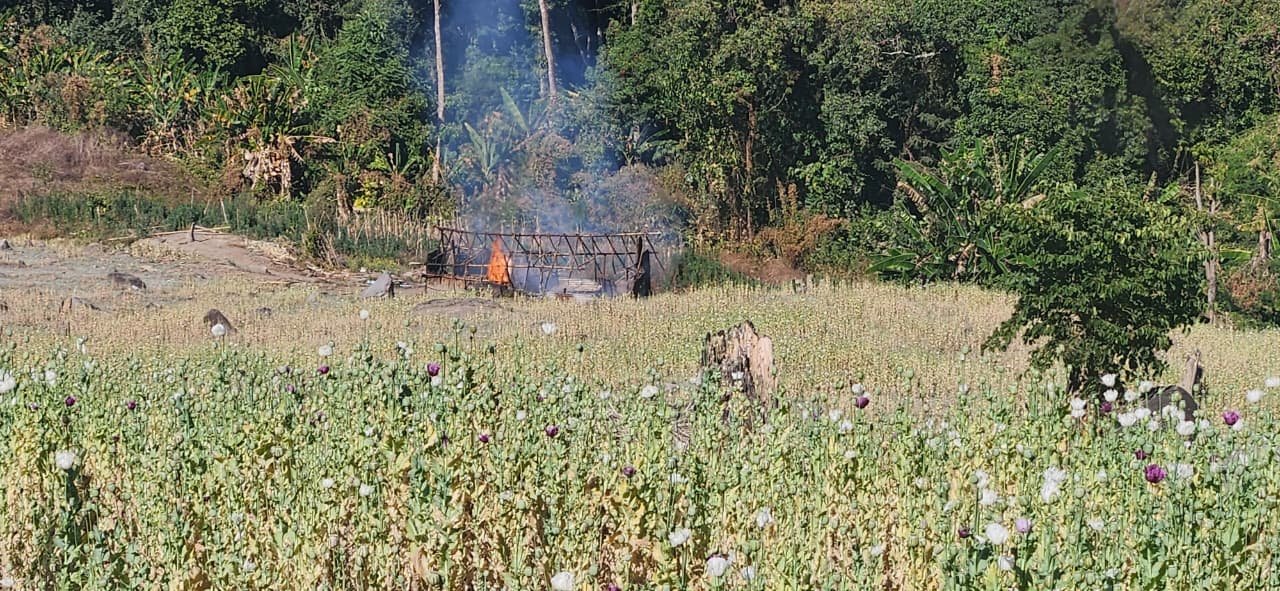 Earlier, on February 19, a similar operation was carried out in the Kangjang Hill Range under Mao Police Station in Senapati district, where 10 acres of poppy plantation were destroyed. During the exercise, three makeshift huts located within the cultivation sites were also demolished.