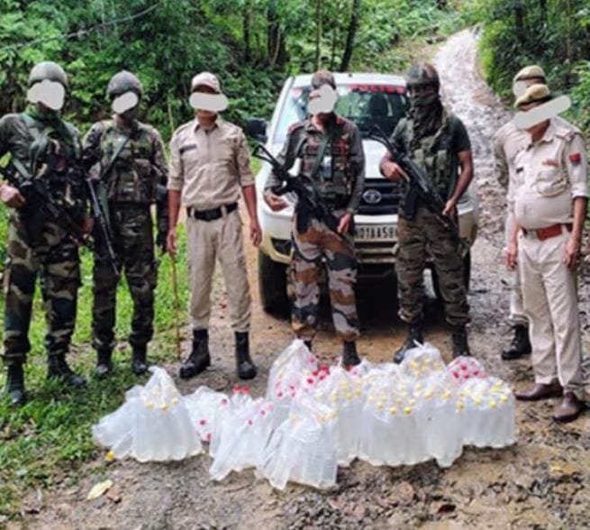 Assam Rifles recovered a large consignment of illicit liquor during an area domination patrol in Tamei, Tamenglong district of Manipur. The troops noticed a suspicious stack during the patrol, which on inspection, led to the recovery of 144 bottles of country-made liquor. The seized items were later handed over to Tamei Police Station for further investigation and legal action.