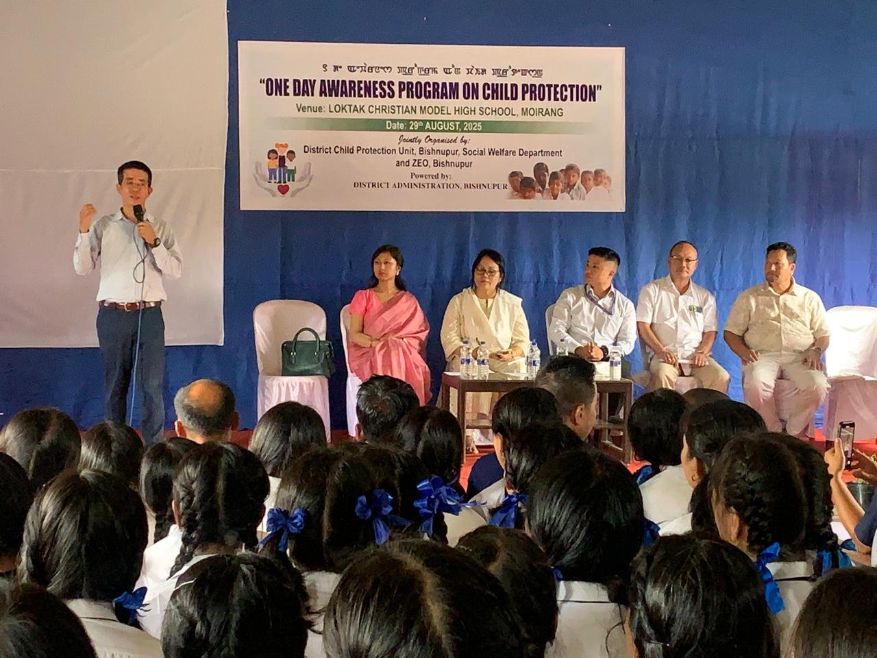 A one-day awareness programme on child protection was organised today at Loktak Christian Model High School, Moirang, by the District Child Protection Unit, Bishnupur, under the Social Welfare Department, in collaboration with ZEO Bishnupur and supervised by the District Administration.