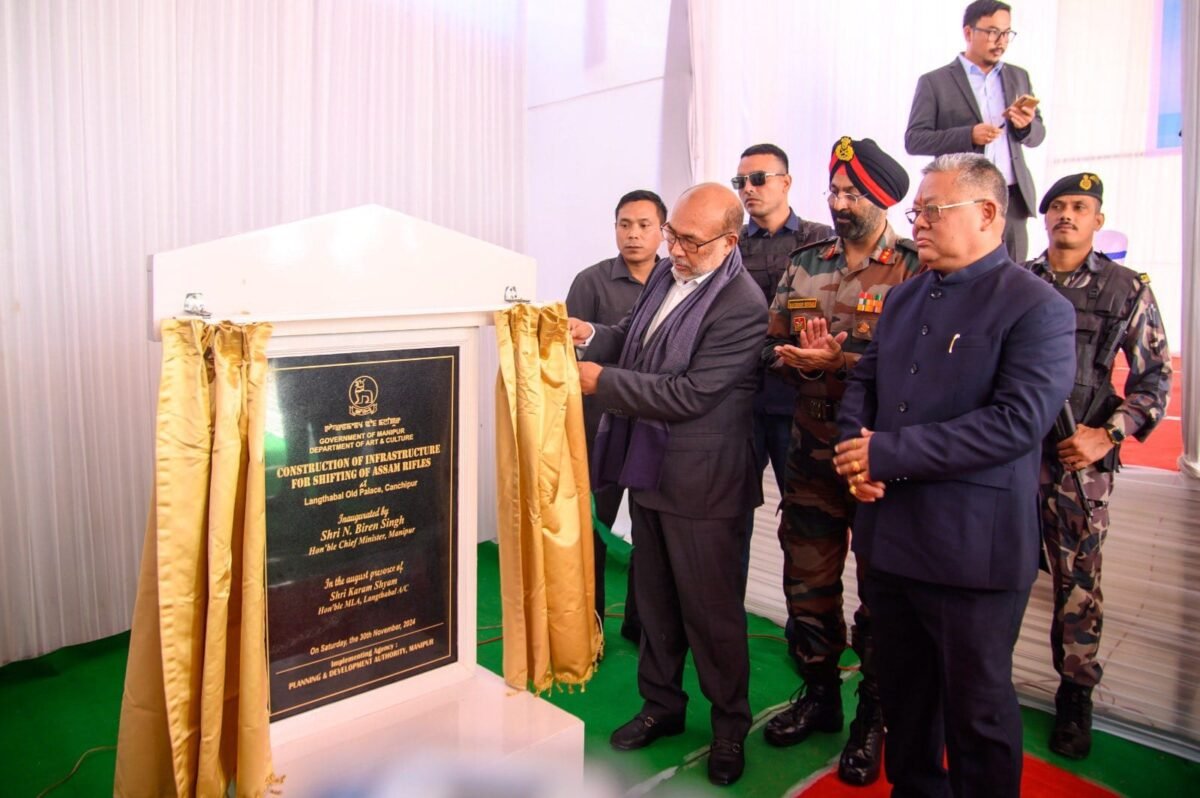 Chief Minister N. Biren Singh today presided over the inaugural ceremony for the construction of infrastructure facilitating the relocation of the Assam Rifles from Langthabal Old Palace, Canchipur, Imphal West. The historic site, located near Manipur University, is set to undergo preservation efforts aimed at protecting its cultural and historical significance.