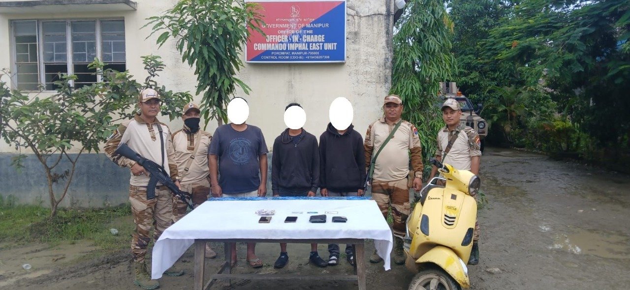 On Sunday (July 27, 2025), three active cadres of the banned Kangleipak Communist Party (Apunba City Meitei) were apprehended from Imphal East. Two of them were caught at Huidrom village while en route to a brick kiln to collect extortion money. Based on their disclosure, another cadre was arrested from Kairang Maning Leikai.