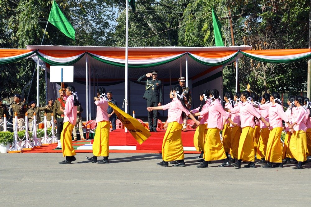 A full-dress rehearsal for the 77th Republic Day celebrations was conducted today at Kangla in Imphal to ensure smooth and coordinated execution of the main event.