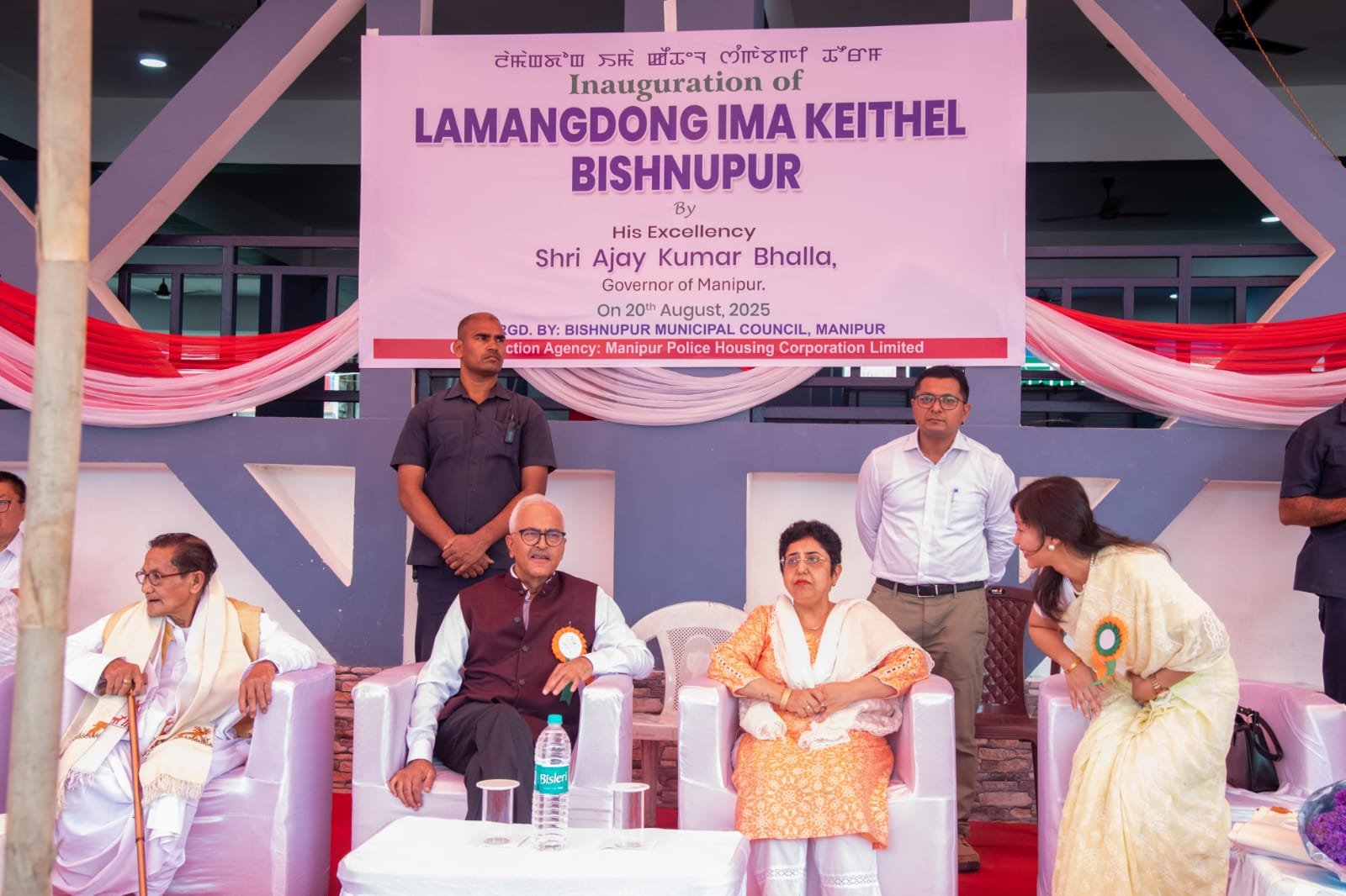 Manipur Governor Ajay Kumar Bhalla, today inaugurated the newly constructed Lamangdong Ima Keithel at Bishnupur district headquarters. He was accorded a warm welcome by Bishnupur MLA Govindas Konthoujam, Deputy Commissioner, Superintendent of Police, officials, and members of the public. Following the inauguration, the Governor inspected the market sheds.