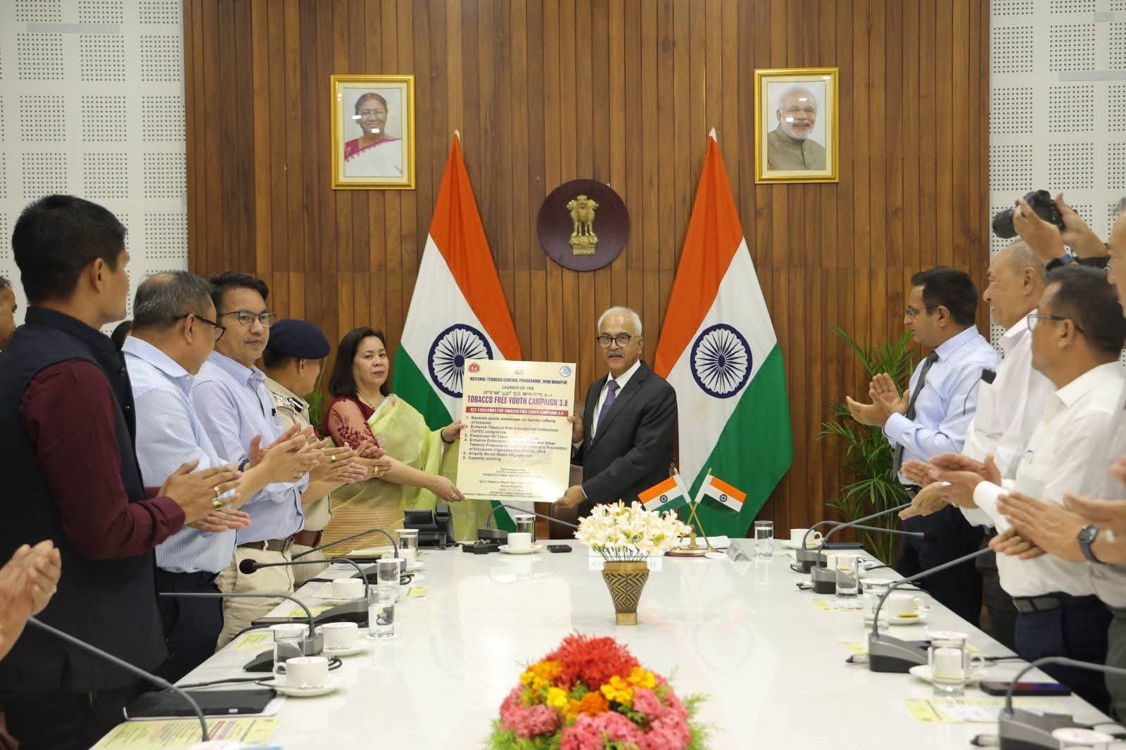 Manipur Governor Ajay Kumar Bhalla today launched the Tobacco Free Youth Campaign 3.0 at Raj Bhavan, Imphal. Organised jointly by the National Health Mission (NHM) Manipur and the Directorate of Health Services, the 60-day campaign aims to raise awareness about the harmful effects of tobacco and promote a tobacco-free Manipur.