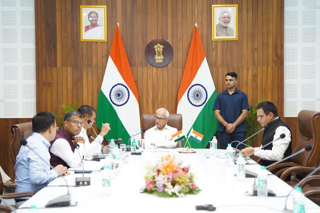 Manipur Governor Ajay Kumar Bhalla chaired two high-level review meetings at the Raj Bhavan in Imphal today, focusing on critical infrastructure development and environmental conservation in the state.