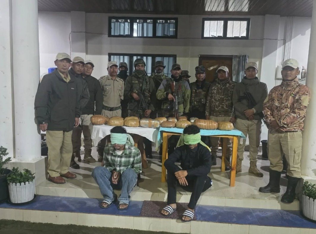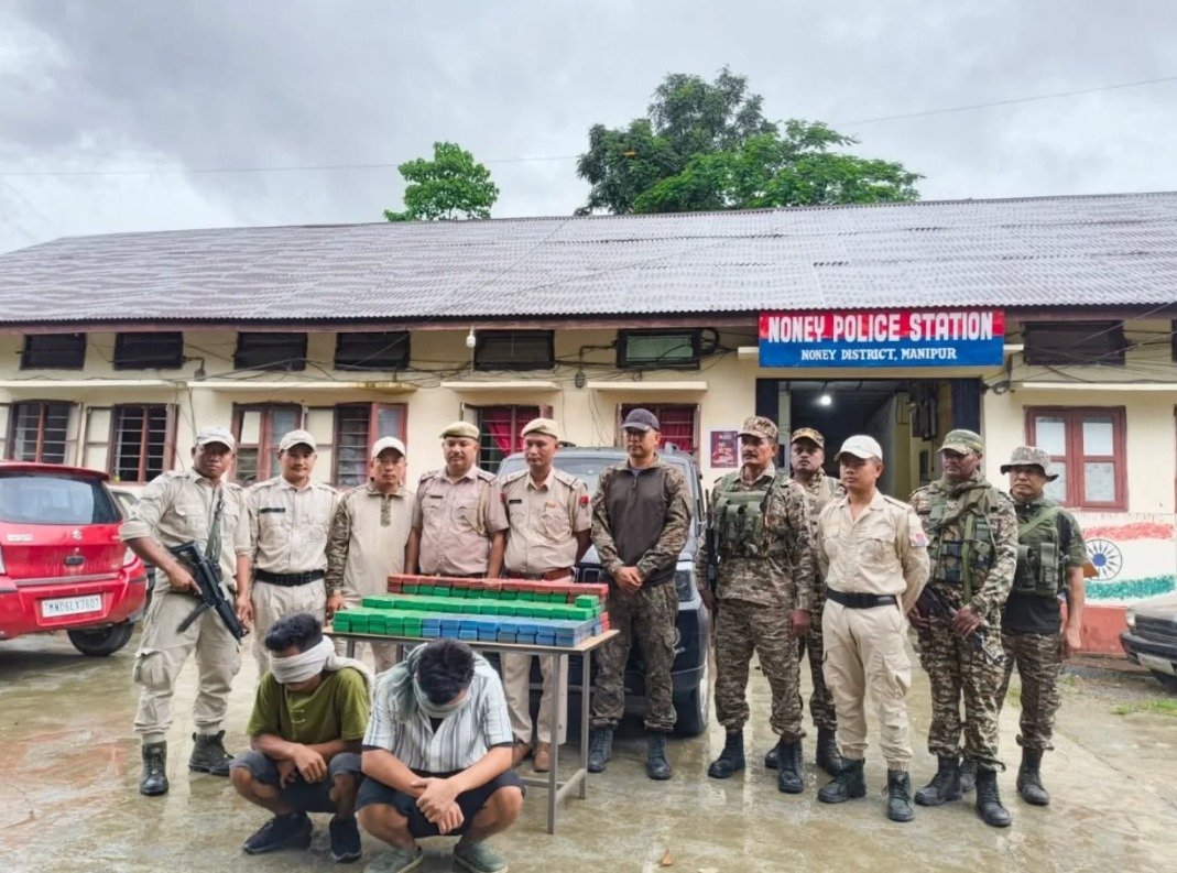 The two occupants of the vehicle — Ginminlen Haokip (24) of G. Phaibung, Motbung, Kangpokpi, and Holminlen Khongsai (30) of Khangbarol village, Chandel — were arrested on the spot. Authorities have launched further investigation into the case.
