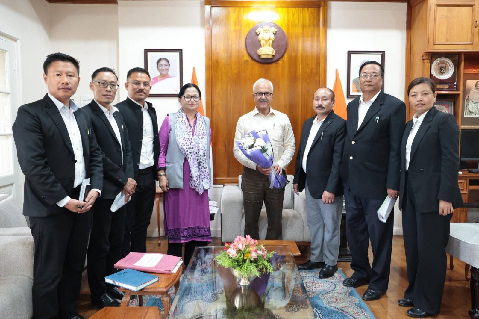 A delegation representing various Hill District Bar Associations met the Governor of Manipur, Ajay Kumar Bhalla, at Raj Bhavan to apprise him of the challenges faced in conducting judicial proceedings in the hill districts. The delegation cited the lack of adequate judicial infrastructure in several areas and sought the Governor’s intervention to address the issue. Commissioner (Law) also attended the meeting.
