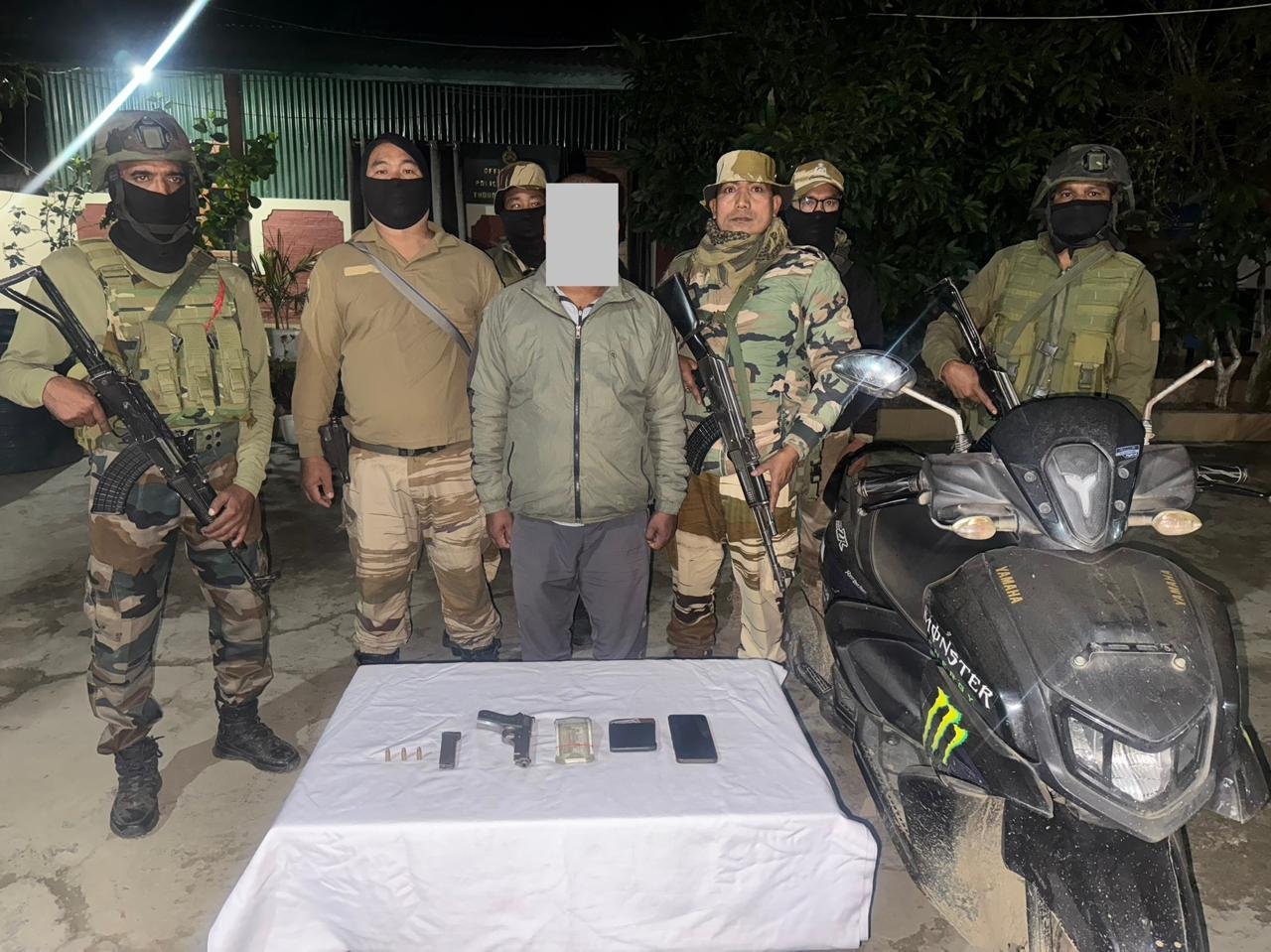During the operation, personnel recovered a .32 pistol with a magazine, three rounds of ammunition, a voter ID card, a mobile phone with two SIM cards, a purse containing Rs 41,200 in cash, and a two-wheeler used for movement.