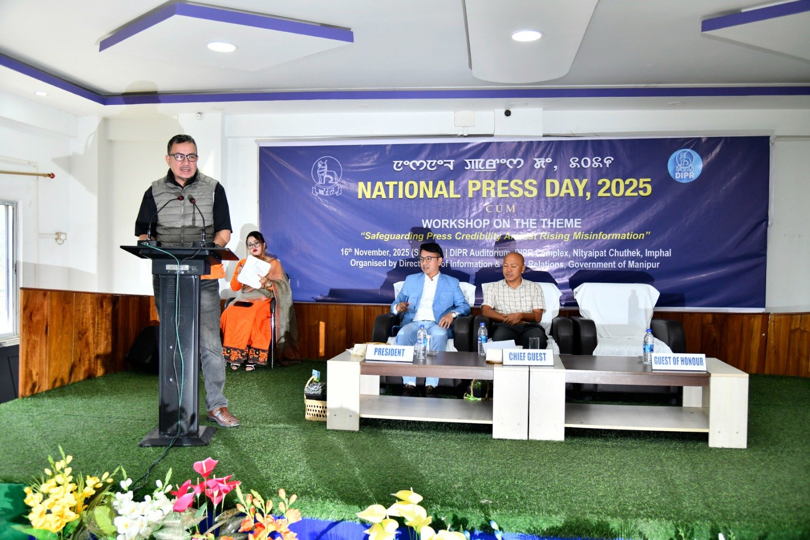 The Directorate of Information and Public Relations (DIPR), Manipur, celebrated National Press Day 2025 at the DIPR Auditorium, Nityaipat Chuthek, Imphal, under the theme “Safeguarding Press Credibility Amidst Rising Misinformation.” The programme was graced by Hungyo Worshang, IAS, Secretary (IPR), as Chief Guest, Director (IPR) Ngangom Uttam Singh as President, and senior journalist Pradip Phanjoubam as Guest of Honour.