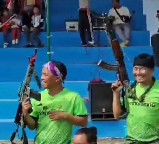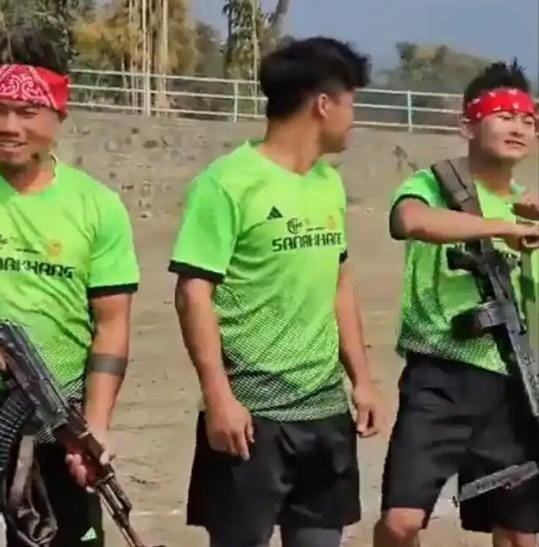 The video, which has sparked widespread concern, shows around 10-15 individuals dressed in camouflage attire alongside others in football kits, holding sophisticated firearms at K. Gamnomphai Village Ground. The incident took place during an ongoing football match at K. Gamnomphai Village, Saitu Sub-Division, under G. Saparmeina Police Station in Kangpokpi District.
