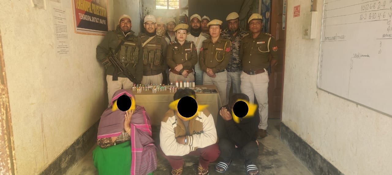 In a separate operation on November 19, Imphal East district police arrested three individuals from Hatta Gollapati in connection with an NDPS case registered at Tengnoupal Police Station. The arrested persons have been identified as Ibemma, 46, of Minuthong Telipati; Md Afzal, 28, of Porompat Muslim Road No. 2; and Shahabuddin, 51, of Yairipok Tulihal Awang Leikai.