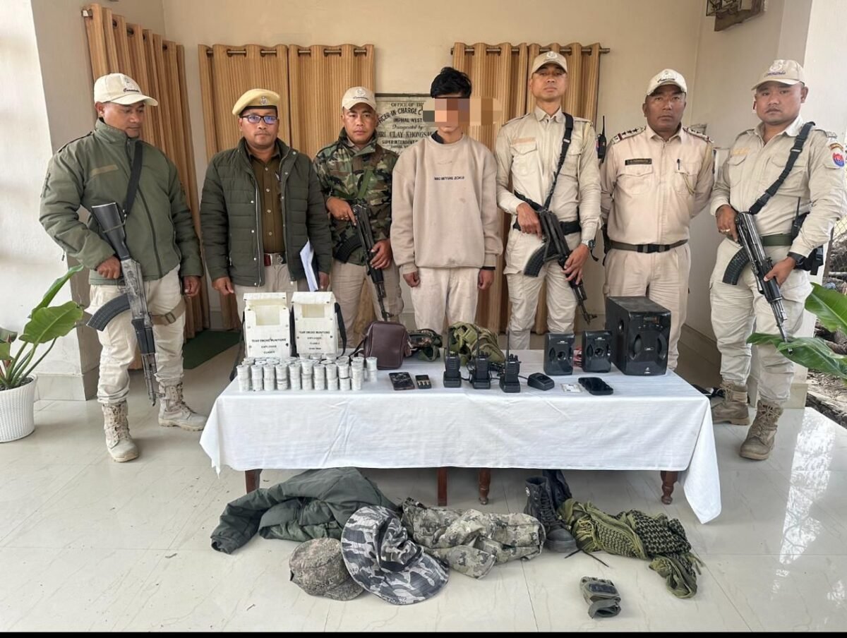In a separate operation, police arrested Thongram Bidyashagar Singh (22), a cadre of the Kangleipak Communist Party (KCP-PWG), from Langol Game Village Zone 2 in Imphal West. The items which were seized from him include three mobile phones, three BAOFENG handheld sets with four chargers; military fatigues, bags, and other miscellaneous items.