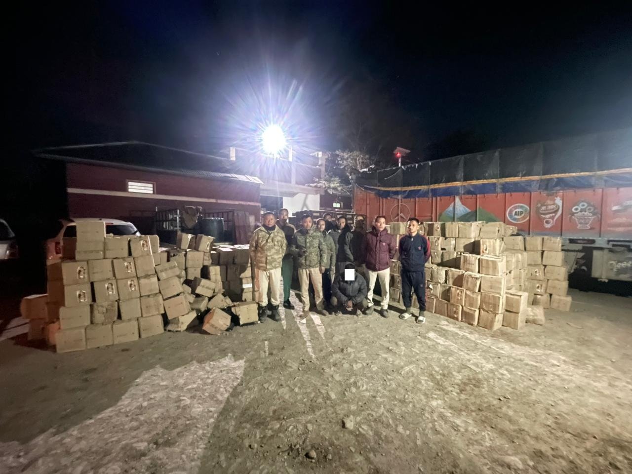 According to police sources, the interception was carried out at Keithelmanbi area under the jurisdiction of Patsoi Police Station. The truck, bearing registration number MN05C-3481, was driven by Ahongshangbam Thenden Singh (55) of Khaidem Awang Leikai.