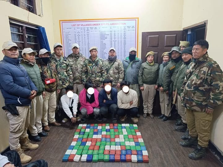 Imphal, Dec 14: In a significant drug bust, Manipur Police seized 5.87 kilograms of brown sugar in Senapati district on Thursday. Acting on intelligence inputs, police raided a house in Chiphaodai village and recovered the drugs hidden inside 150 soap cases.