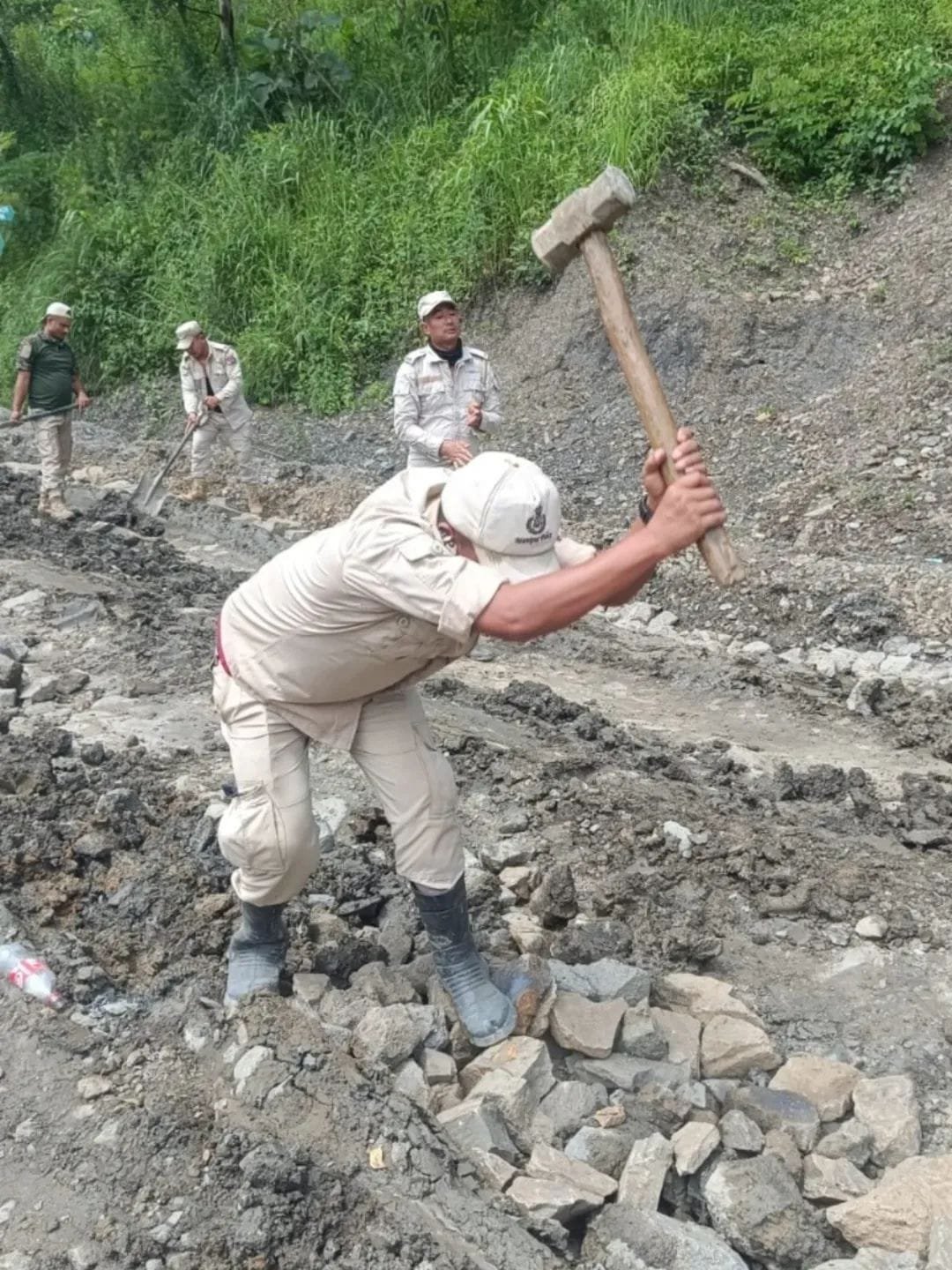 Manipur Police carried out a civic action initiative to repair the bypass road connecting Chakabama in Nagaland to Martyr’s Park in Senapati district.