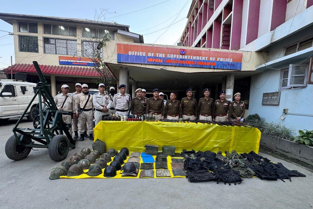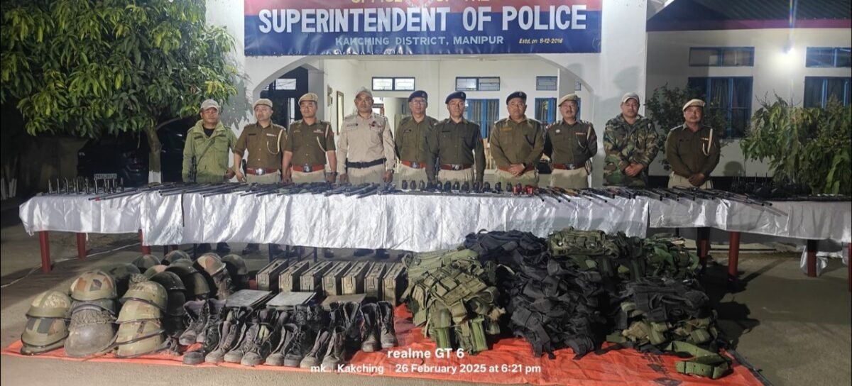In Kakching district, a large quantity of arms, ammunition, hand grenades and other items have been handed to various police stations, Commando units, outposts of the district. The surrendered items have been displayed at the Office of SP Kakching in presence of Th. Vikramjit Singh, IPS, SP Kakching.