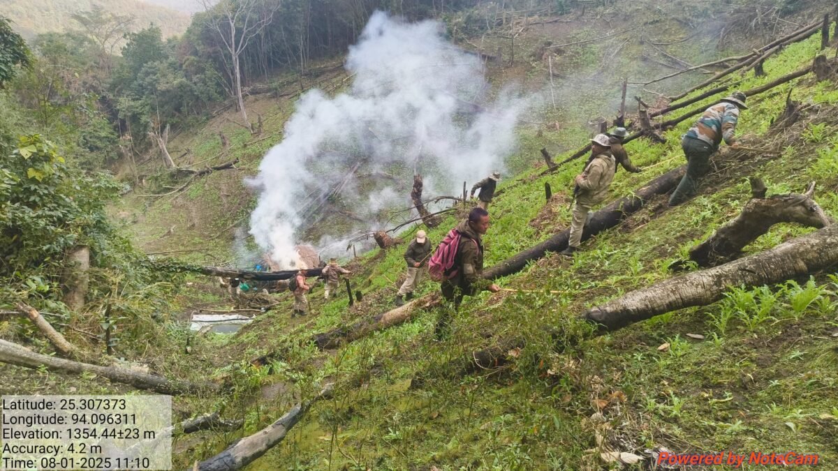 The operation involved multiple teams, including two from Senapati Police Station headed by SI Dahrii and ASI Khole, a Hengbung Checkpost team led by ASI Lungni, an RL/SPT unit under Inspector Simon, Tadubi Police Station led by SI Anthony, Mao Police Station led by SI Kom, and a team from Maram Police Station. They were joined by six Forest Department staff members and an Executive Magistrate.